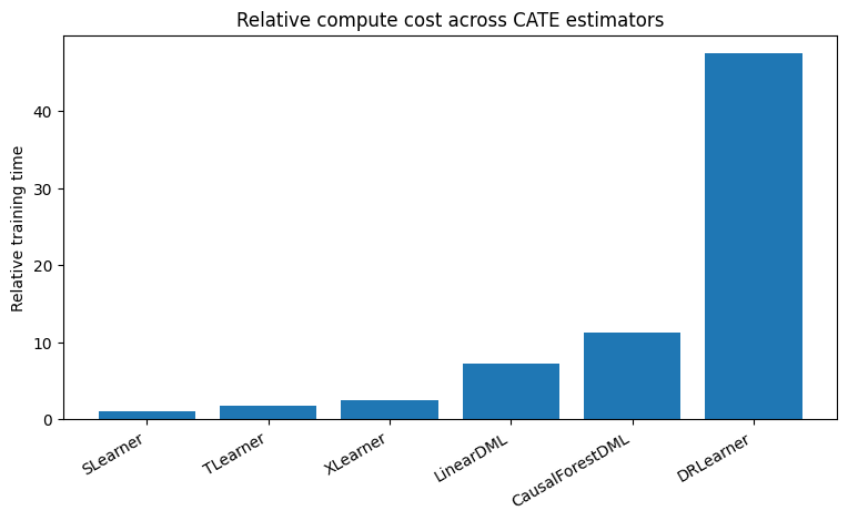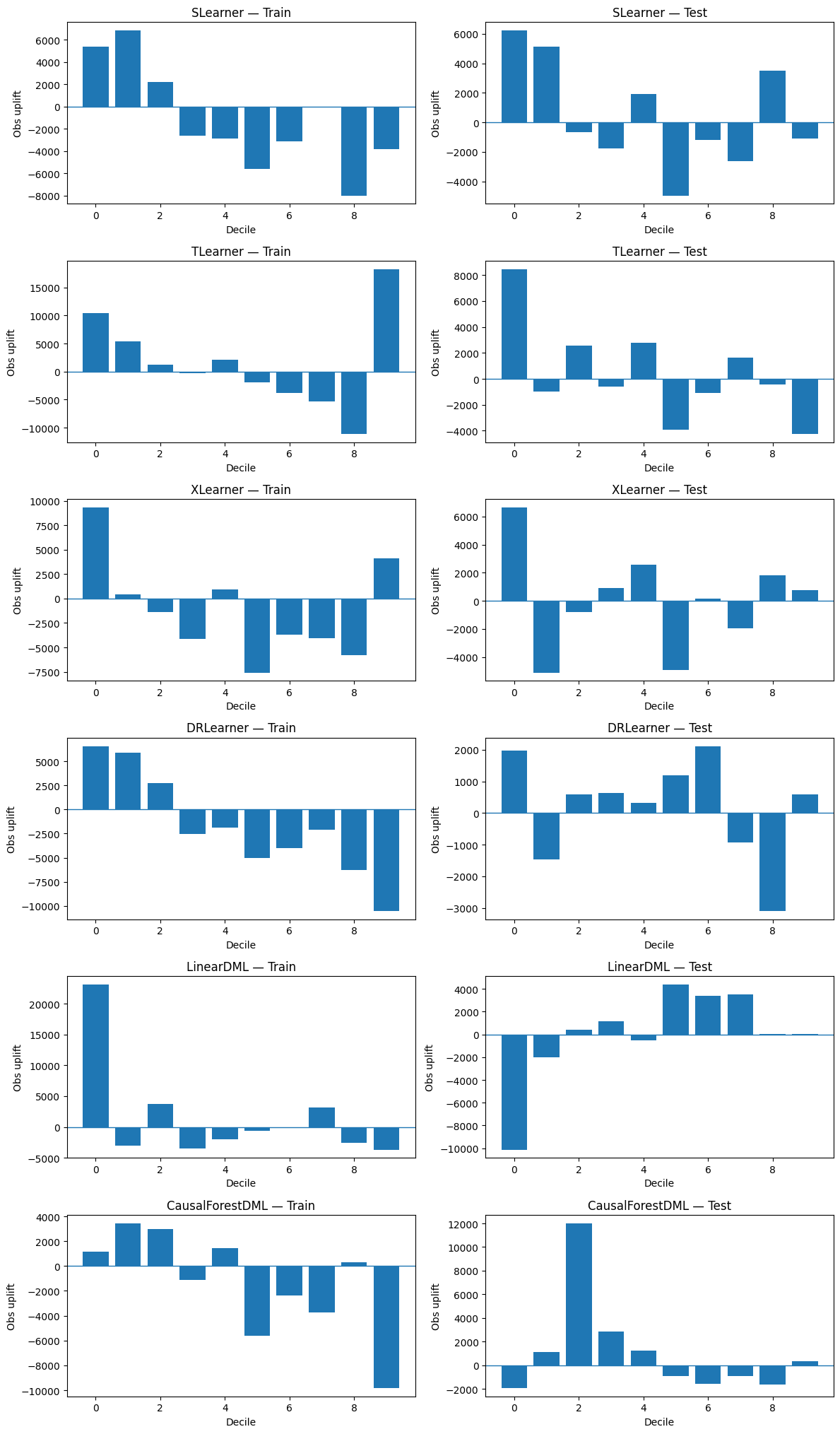 - S / T / X / DR / LinearDML / CausalForestDML estimators,