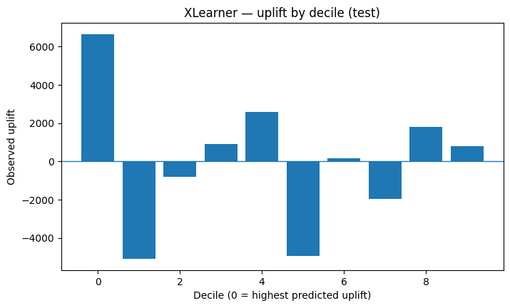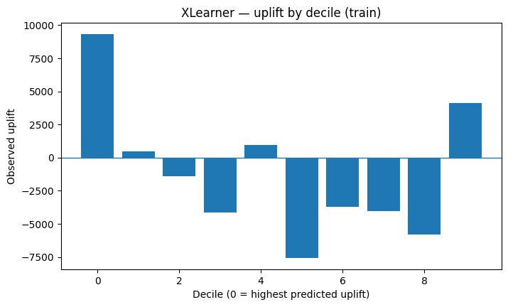 - uplift-by-decile evaluation,