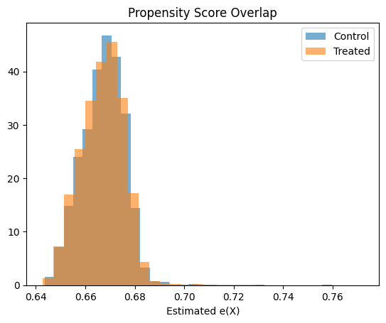 - Some customers have propensity scores near 0 or 1